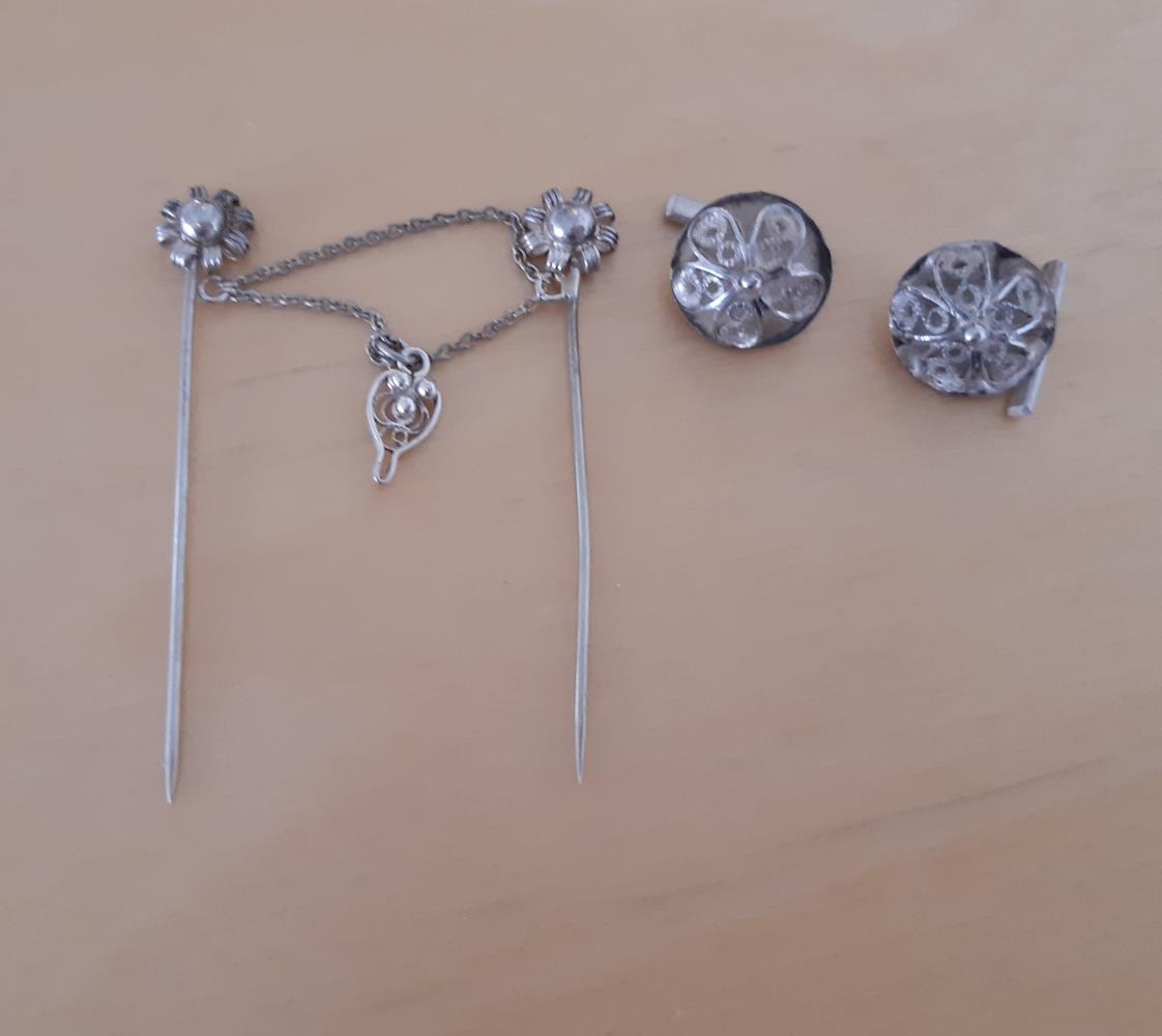 a - Upphlutsbolur með silfurvíravirkisskreyttum borðum. Fjórar millur eu á hvorum borða. Silfurrreim.
