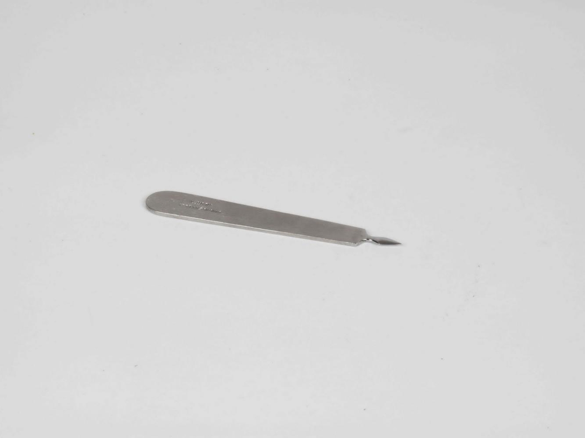 Bólusetningarnál úr ryðfríu stáli, merkt: SIMONSEN & WEEL RUSTFRI, gerð Aesculap B-10284 Tonpfmesser nach Riesel. Ónotuð.