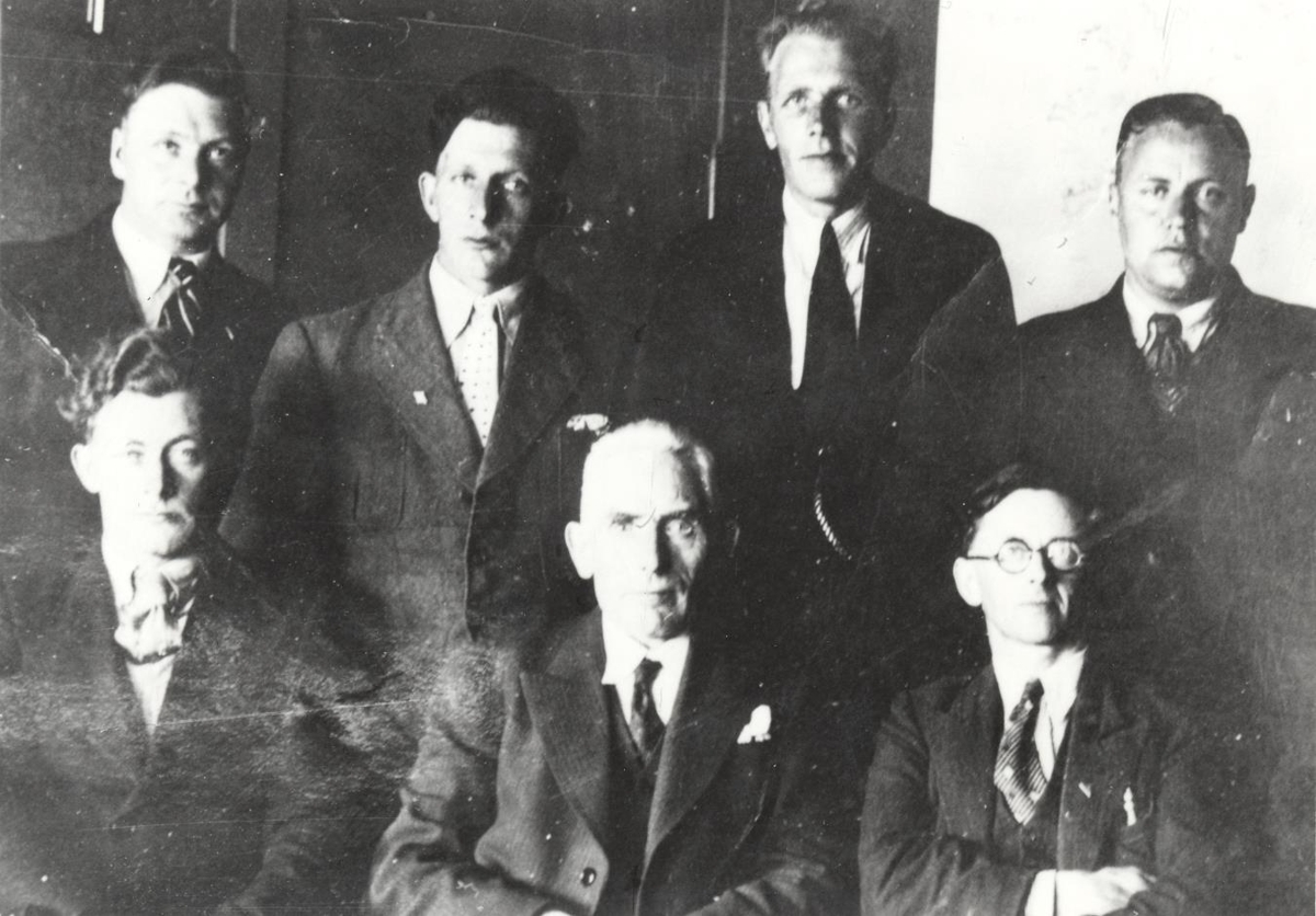 Hópmynd tekin í slýsavarnarleiðangri undir Eyjafjöllum einhverntíma á árunum 1940-1950.