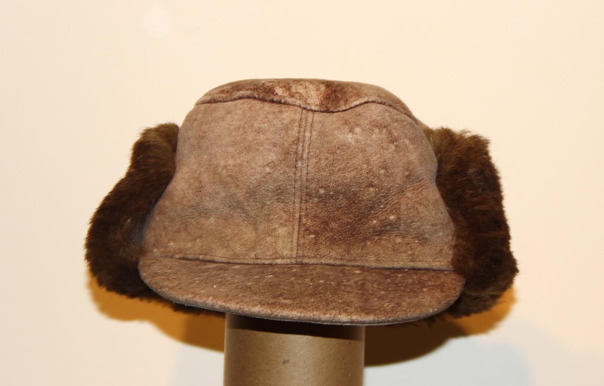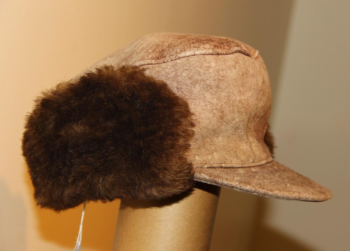 Loðhúfan er derhúfa með eyrnaskjóli. Skinnið er brúnt að lit. Það er lambsskinn sem er sútað undir nafninu mokkaskinn en þá er ullin klippt hæfilega en holdrosinn snýr út. Stærð 58.