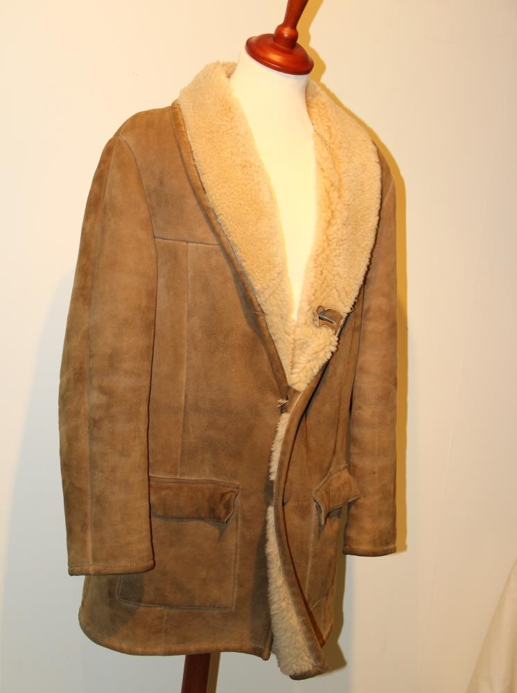 Jakkinn er ljósdrappaður á litinn og ullin gulleit. Ísaumaður miði m/texta: Fyrir þá sem vilja það besta. Fataverksmiðjan Hekla, Akureyri. Stærð 50.