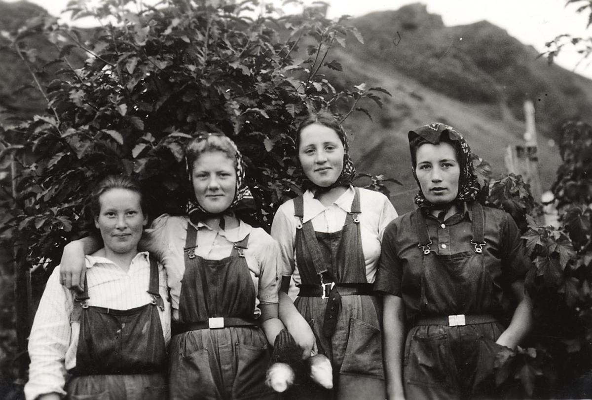 Fjórar konur. Tvær ónafngreindar, Guðfinna Guðlaugsdóttir og Helga Magnúsdóttir.