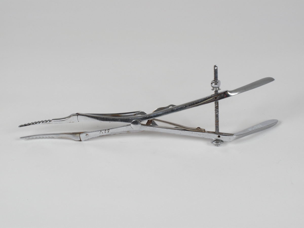 Tvíarma cervix dilatator, krómaður. Merki: Penn USA/CHROME (sbr.V Mueller & Co, bls. 321, GS-513). Úr eigu Péturs Jakobssonar próf. Sjá: Blöndal/Jónsson I 1970, bls. 646. Gunnlaugur Snædal afhenti.