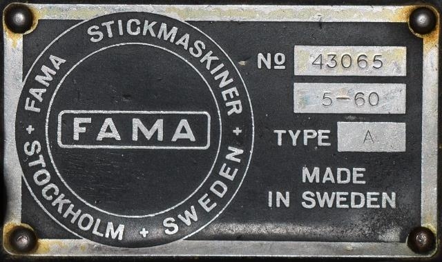 Fama prjónavél úr búi Ingiríðar Gunnlaugsdóttur frá Selárdal. Fama. Type A. No. 43065. Framleiddar í Svíþjóð.