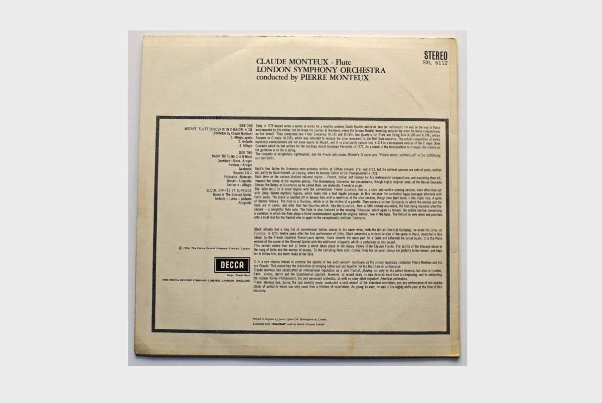 Flautukonsert í D-dúr eftir Mozart, Suite No. 2 í h-moll eftir Bach og Dance of the blessed spirits úr Orphée et Eurydice eftir Gluck. Í flutningi flautuleikarans Claude Monteux og Sinfóníuhljómsveitar Lundúna undir stjórn Pierre Monteux.