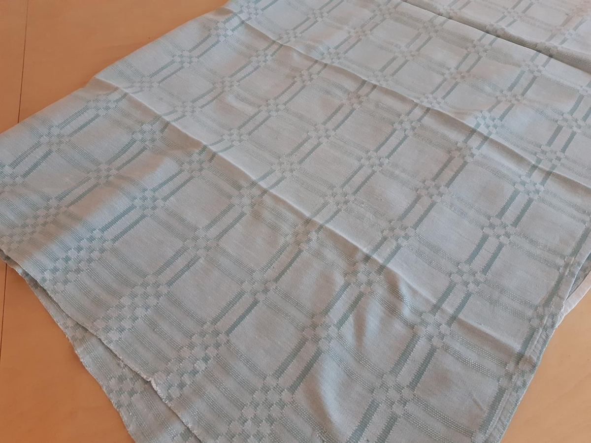 Dúkur - Handofinn úr bómull og tvisti úr grænu og hvítu. - Saga: Úr eigu Ástríðar Jóhannesdóttur, húsfreyju á Torfalæk. Ofið á Kvennaskólanum af Ástríði 1940-1941. Elín S. Sigurðardóttir, Torfalæk febrúar 2002 Ástríður Jóhannesdóttir (1921-1988) Torfalæk