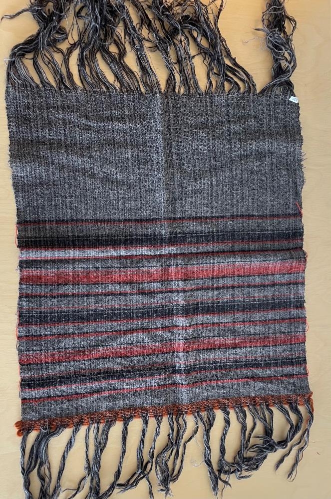 Grátt stykki - Grátt ofið stykki með rauðum röndum.