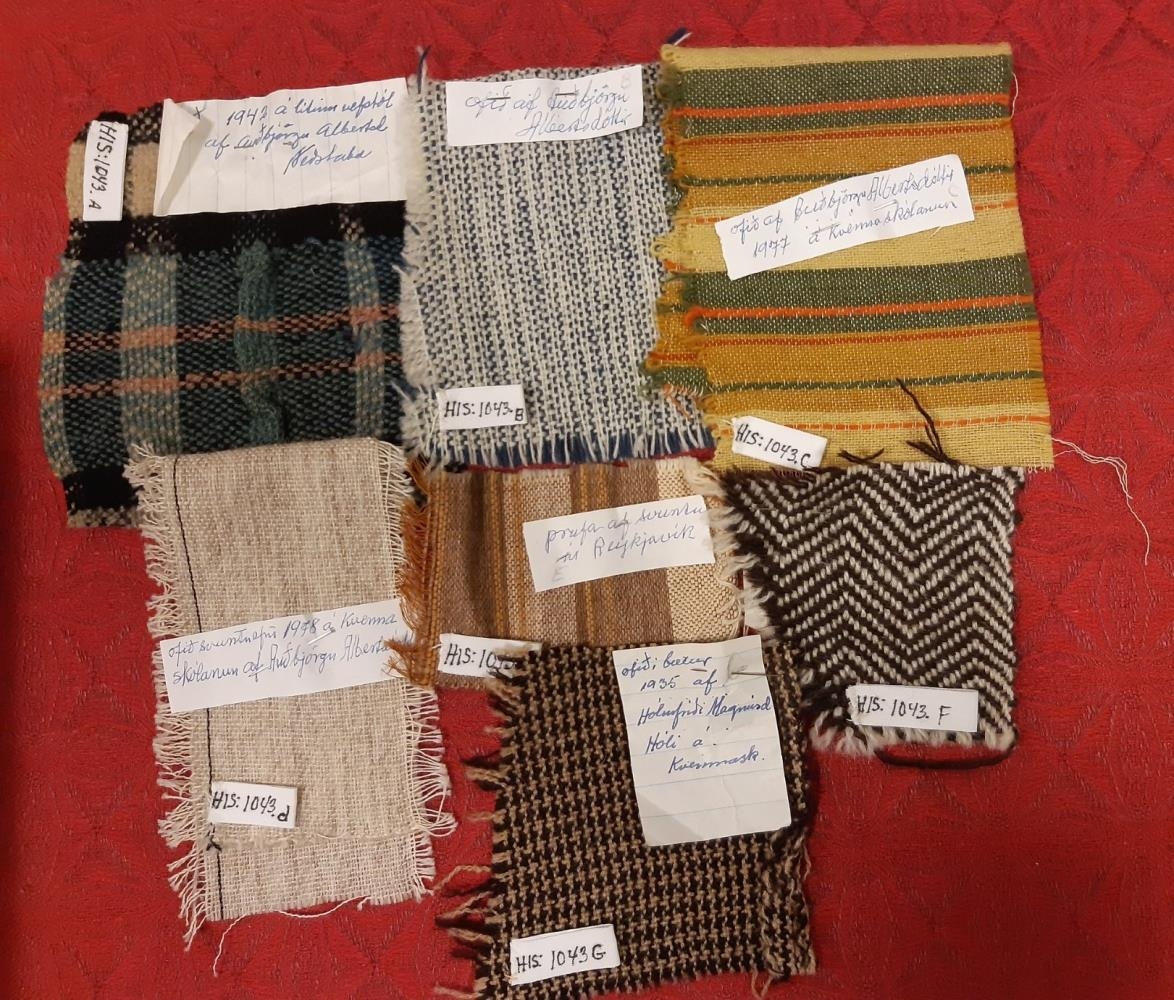 Sérheiti: Vefnaðarprufur a,b,c,d,e,f,g