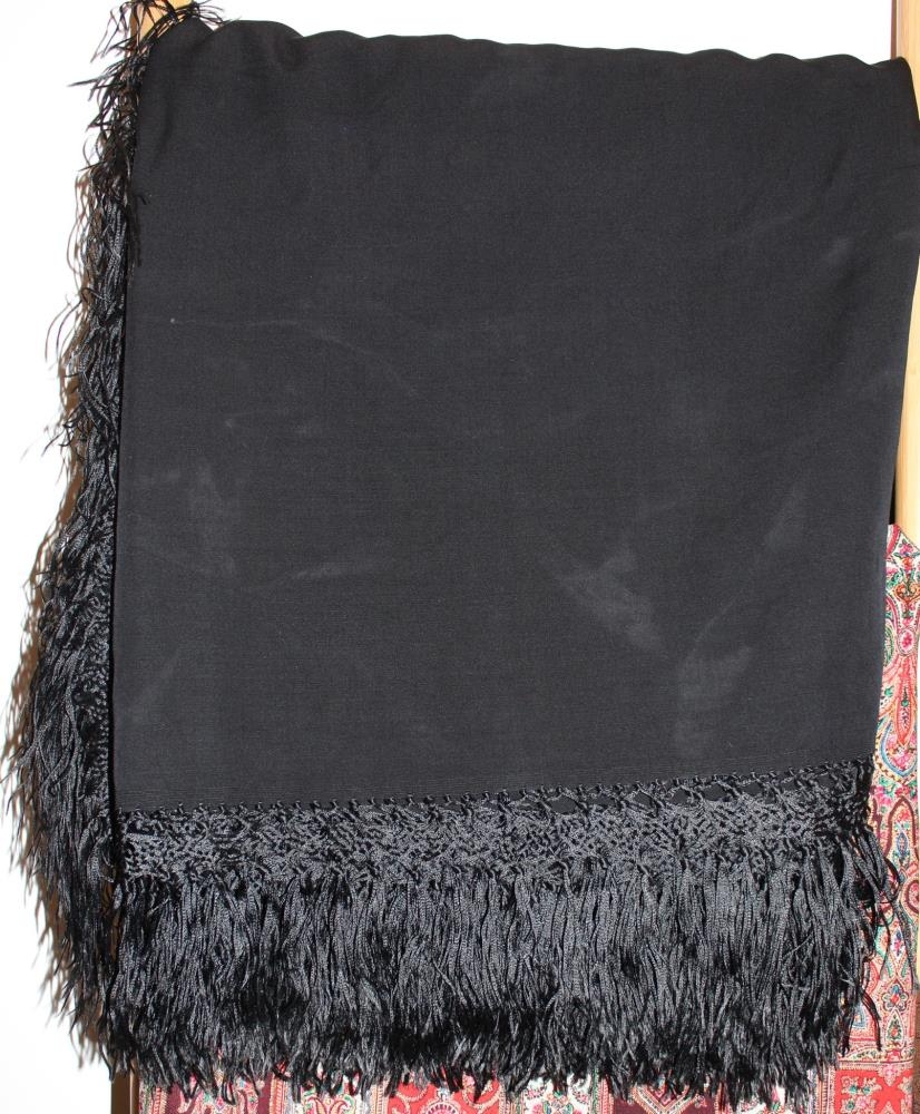 Peysufatasjal - Svart kasmírsjal með silkikögri (15 cm).