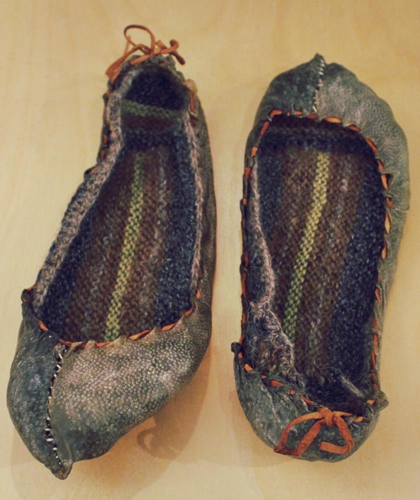 Skór úr steinbítsroði, bundnir aftur fyrir með brúnum leðurþveng. Una minntist þess þegar hún og systkin hennar voru send á milli bæja þá talaði fólk um hve marga skó það þyrfti fyrir ferðina. Vegalengdin var mæld í skópörum og gjarnan talað um svo og svo margar roðskóaheiðar eftir því hve mörgum skóm var slitið á leiðinni t.d. ef fólk þurfti að fara yfir eina, tvær eða jafnvel þrjár heiðar. Þegar skórnir voru útslitnir var leðurþvengurinn dreginn úr slitnu skónum og settur í þá nýju. Gömlu skórnir voru síðan brotnir saman og settir undir stein. Oftast voru roðskinnsskór hafðir utanyfir sauðskinnsskóm þeim til hlífðar.