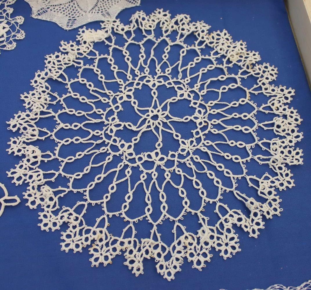 Dúkur - Orkeraður dúkur með hvítu heklugarni. Kringlóttur með tungukanti. - Saga: Munur frá Elísabetu Sigurgeirsdóttur. Gjöf frá Unu Thoroddsen, mágkonu Elísabetar. Gert um 1985. Komudagur 2. maí 1999