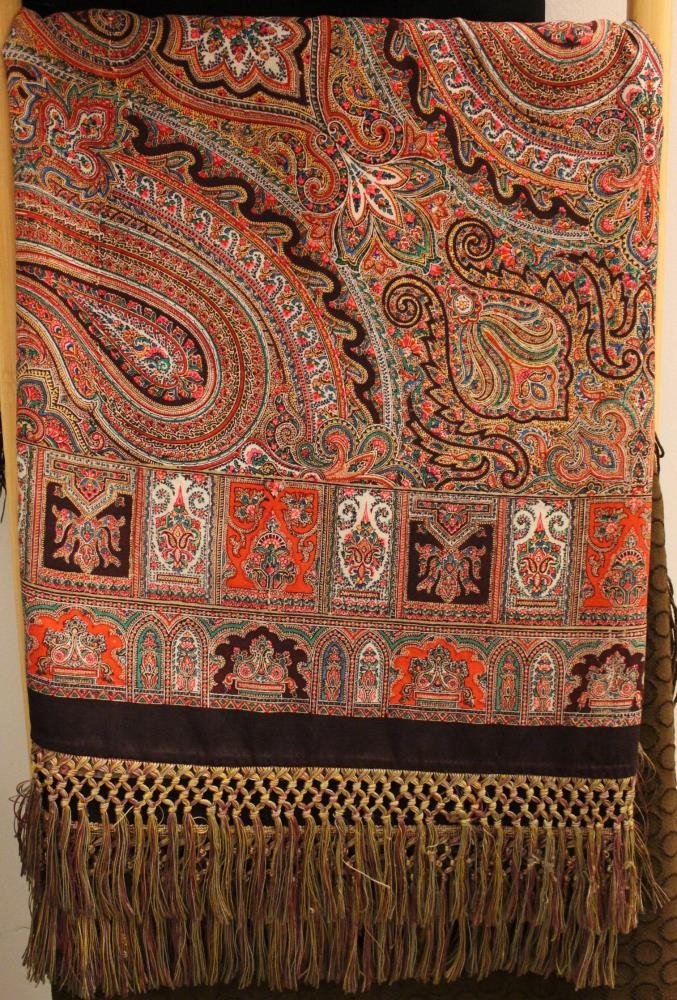Kasmírsjal - Kasmírsjal með kögri, franskt pontumunstur.