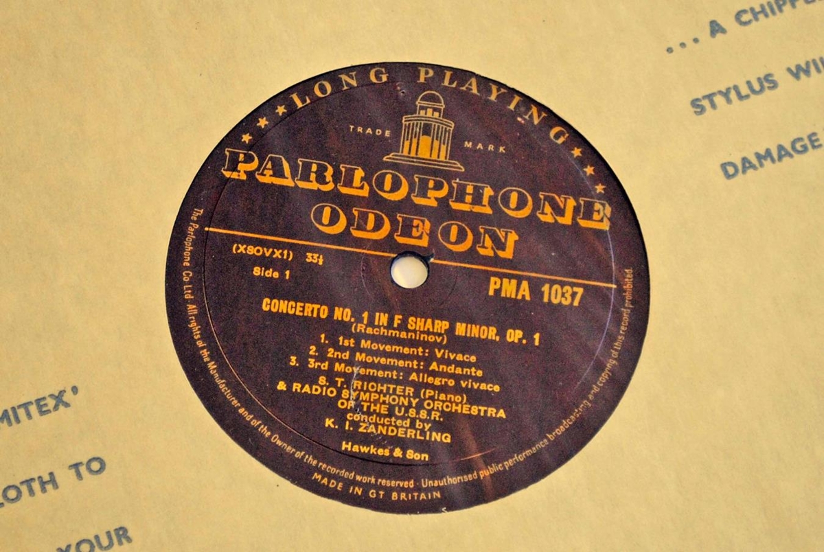 S.T. Richter leikur verk eftir Rachmaninoff og Bach. Concerto no. 1 in F sharp minor op.1 eftir Rachmaninoff ásamt útvarpssinfóníuhljómsveit U.S.S.R og Concerto in D minor eftir Bach ásamnt Sinfóníuhljómsveit U.S.S.R.