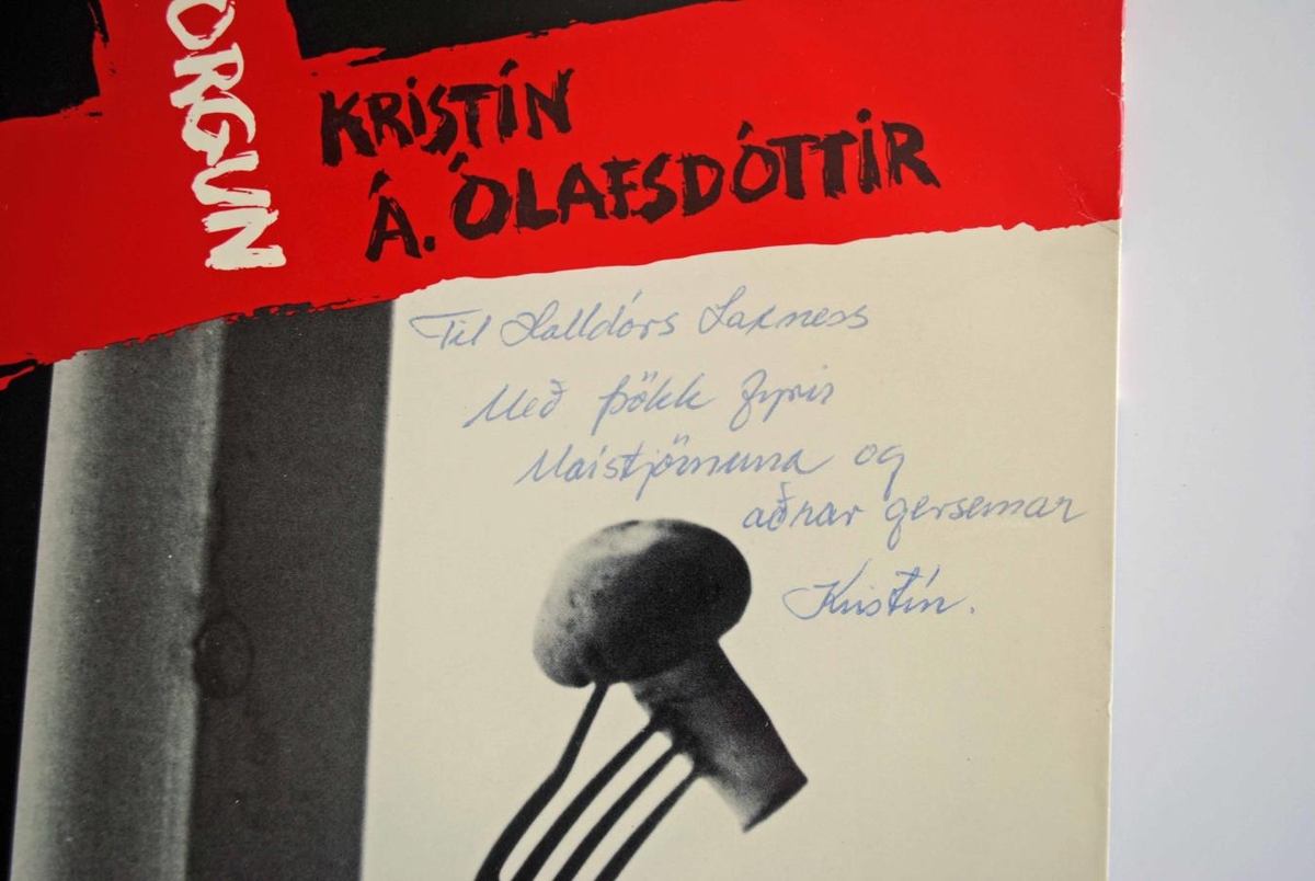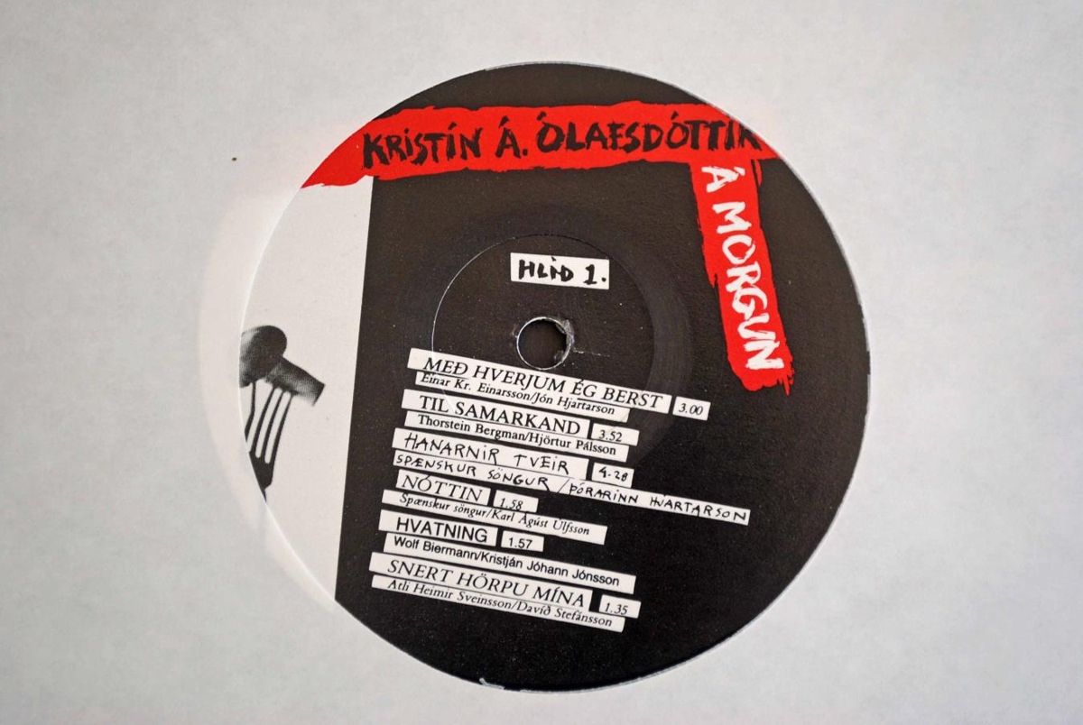 Platan Á morgun þar sem Kristín Á. Ólafsdóttir flytur ýmis lög. Meðal annarra Maístjörnuna eftir Jón Ásgeirsson og Halldór Laxness. Á bakhlið umslagsins hefur Kristín skrifað: ,,Til Halldórs Laxness Með þökk fyrir Maístjörnuna og aðrar gersemar Kristín."