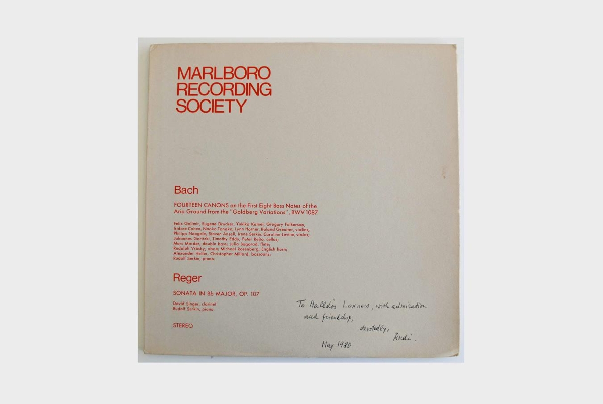 Rudolf Serkin sem heimsótti Gljúfrastein og lék þar á flygilinn hefur sent Halldóri þessa plötu ásamt fleirum í safninu.
