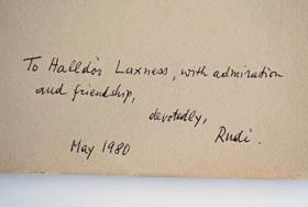 Í safninu eru til tvö eintök af þessari plötu. Annað þeirra er ennþá í plastinu en hefur þó verið opnað á einni hlið svo hægt sé að fjarlægja plötuna úr umslaginu. Á hinu eintakinu hefur verið skrifað á umslagið: "To Halldór Laxness, with admiration and friendship, devotedly, Rudi. May 1980."