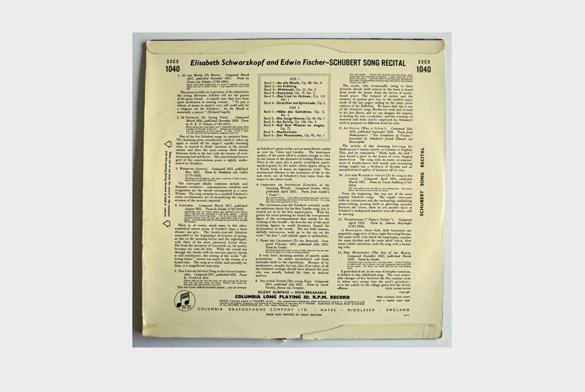 Elisabeth Schwarzkopf sópran og Edwin Fischer píanóleikari flytja sönglög eftir Schubert.
