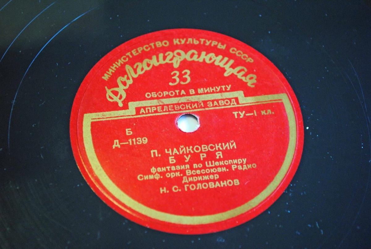 Stormurinn og Fantasía eftir Shakespear eftir Tchaikovsky. Útvarpshljómsveit Sovétríkjanna leikur undir stjórn Nikolai Golovanov. Allar upplýsingarnar á plötunni eru á rússnesku en skifað hefur verið á umslagið með blýanti á dönsku. Platan er í rauða hljómplötukassanum.