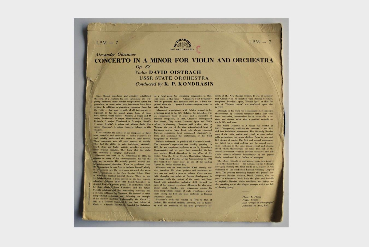 Concerto in A minor for Violin and Orchestra eftir Alexender Glazunov í flutningi David Oistrach, fiðluleikara og USSR State Orchestra undir stjórn Kirill Kondrashin.