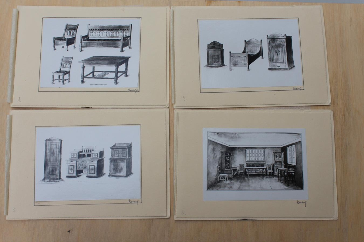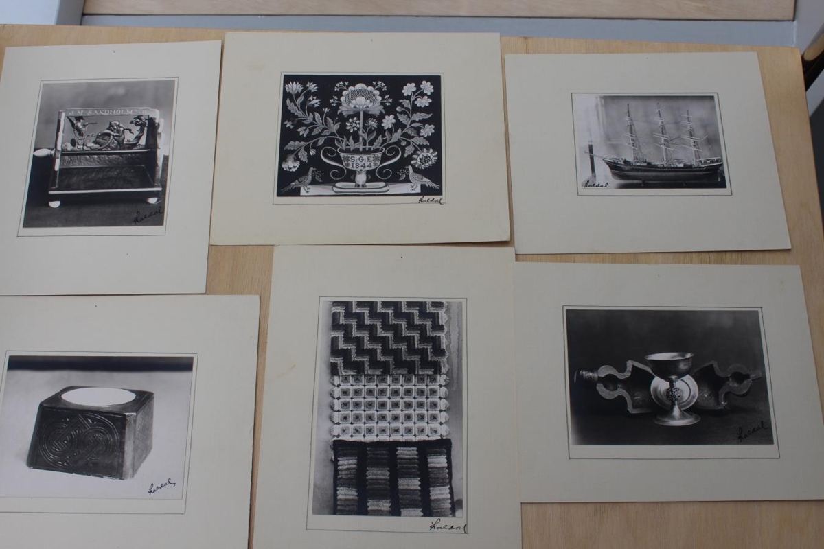 18 ljósmyndir teknar á Landssýningu 1930 eftir Jón Kaldal af handverki Ríkharðs Jónssonar og Halldóru Bjarnadóttur.