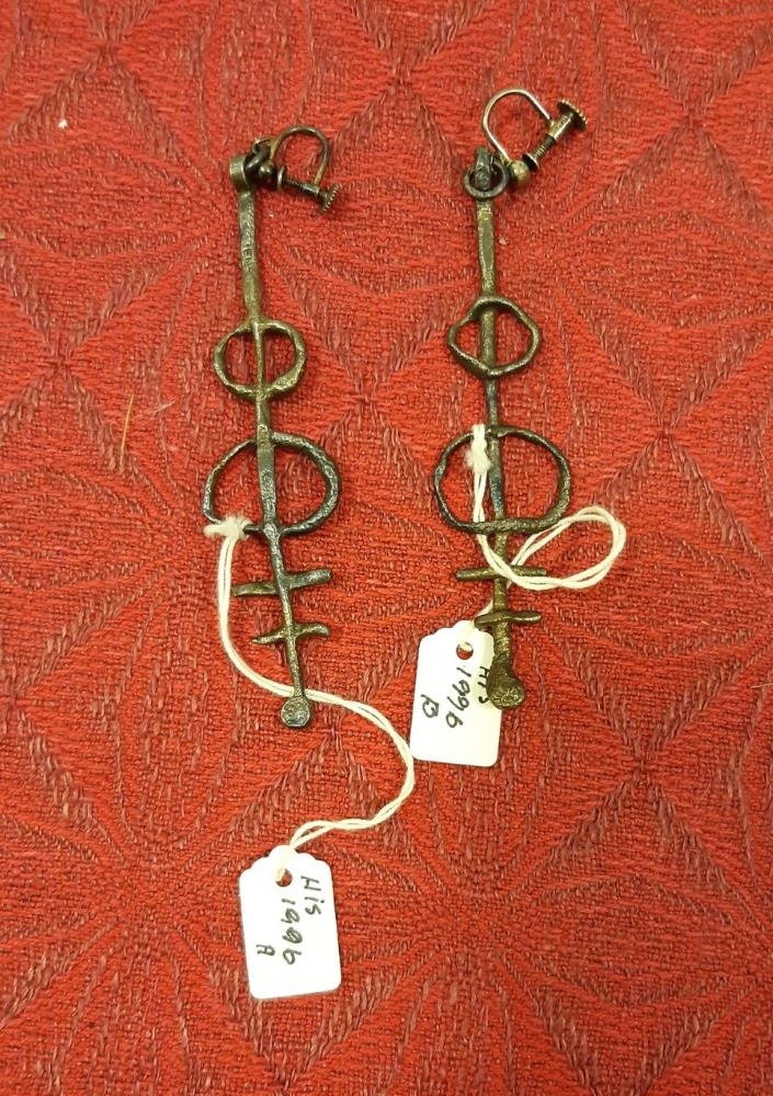 Saga: Sigríður Bjarnadóttir (1929-2013), keypti þessa eyrnarlokka ásamt hálsmeni sbr. Nr. 1997, til að bera við kvöldkápu nr. 1699.