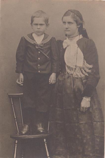 Systkinin Jóhann Bjarnason (1902-1972) og Jófríður Margrét Guðbrandsdóttir (1884-19540) á Leiðólfsstöðum, Laxárdal, Dalasýslu.