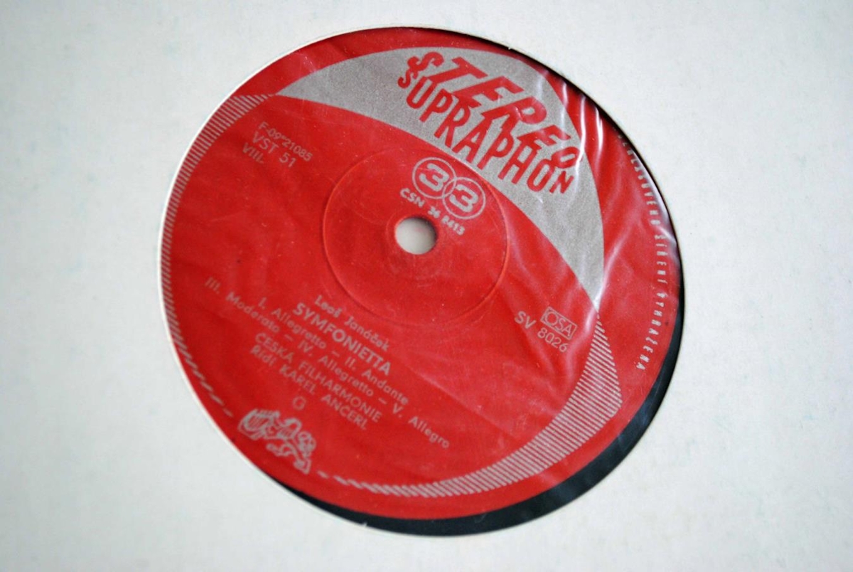 Symfonietta og Tarlas Bulba eftir Leos Janacek í flutningi tékknesku fílharmóníunar undir stjórn Karel Ancerl. Platan er í bláa hljómplötukassanum.