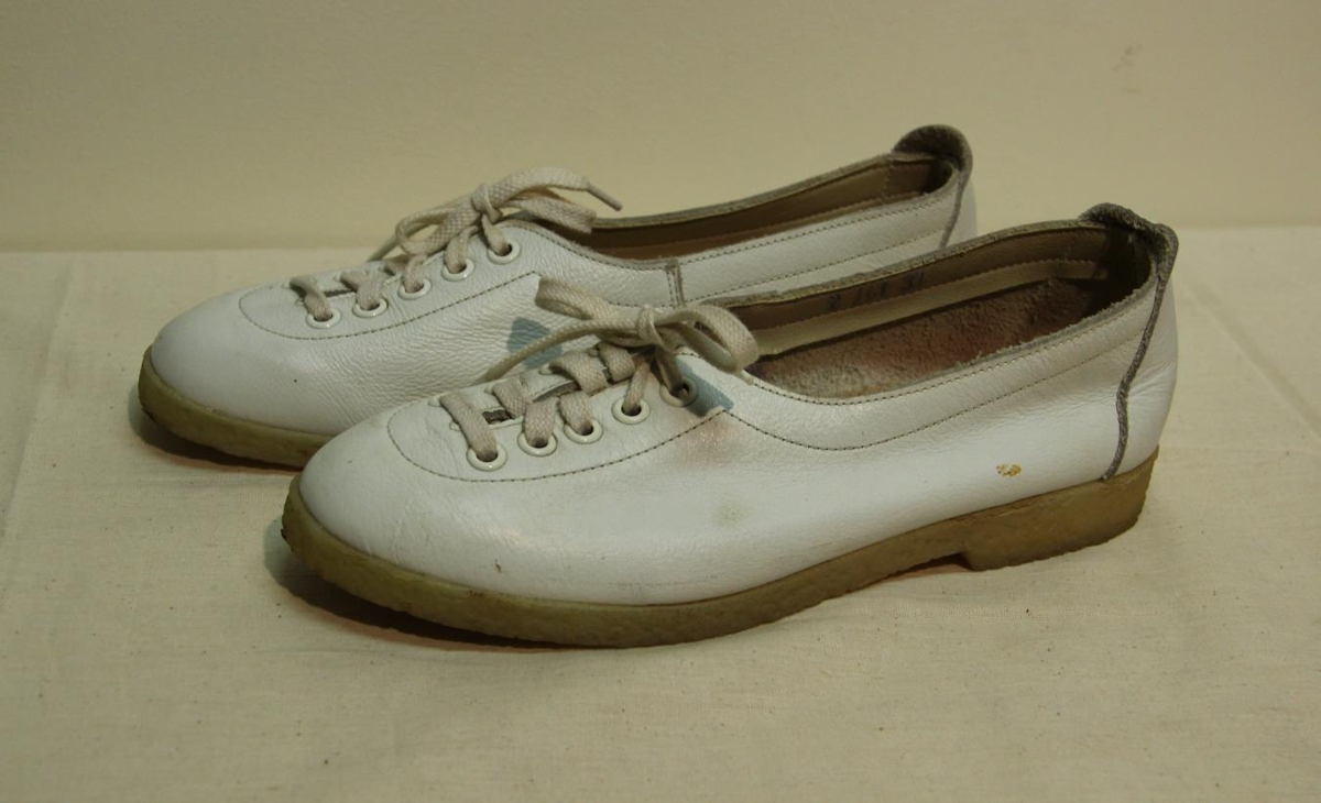 Skórnir eru hvítir með ljósbrúnum sóla og reimaðir. Stærð: Ca. 38-39. Á skóbotni stendur: Strikið.