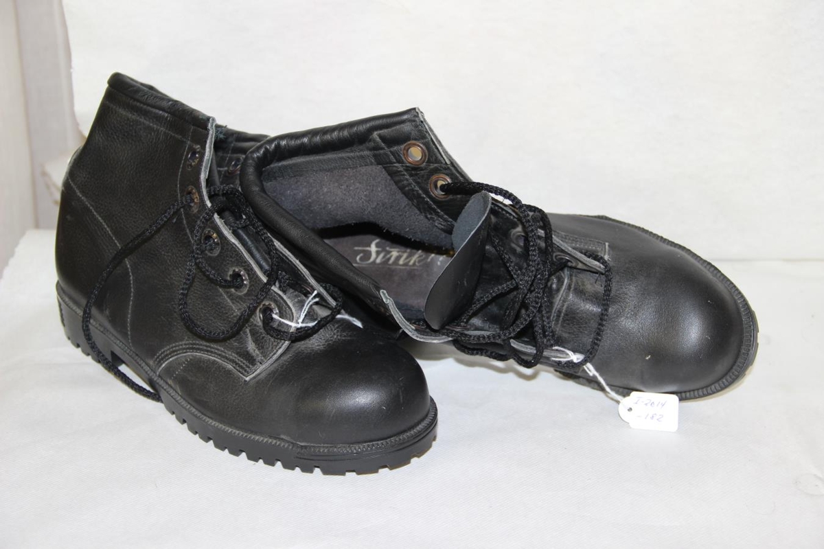 Vinnuskór með stáltá. Þeir eru úr svörtu leðri og reimaðir. Stærð: 43