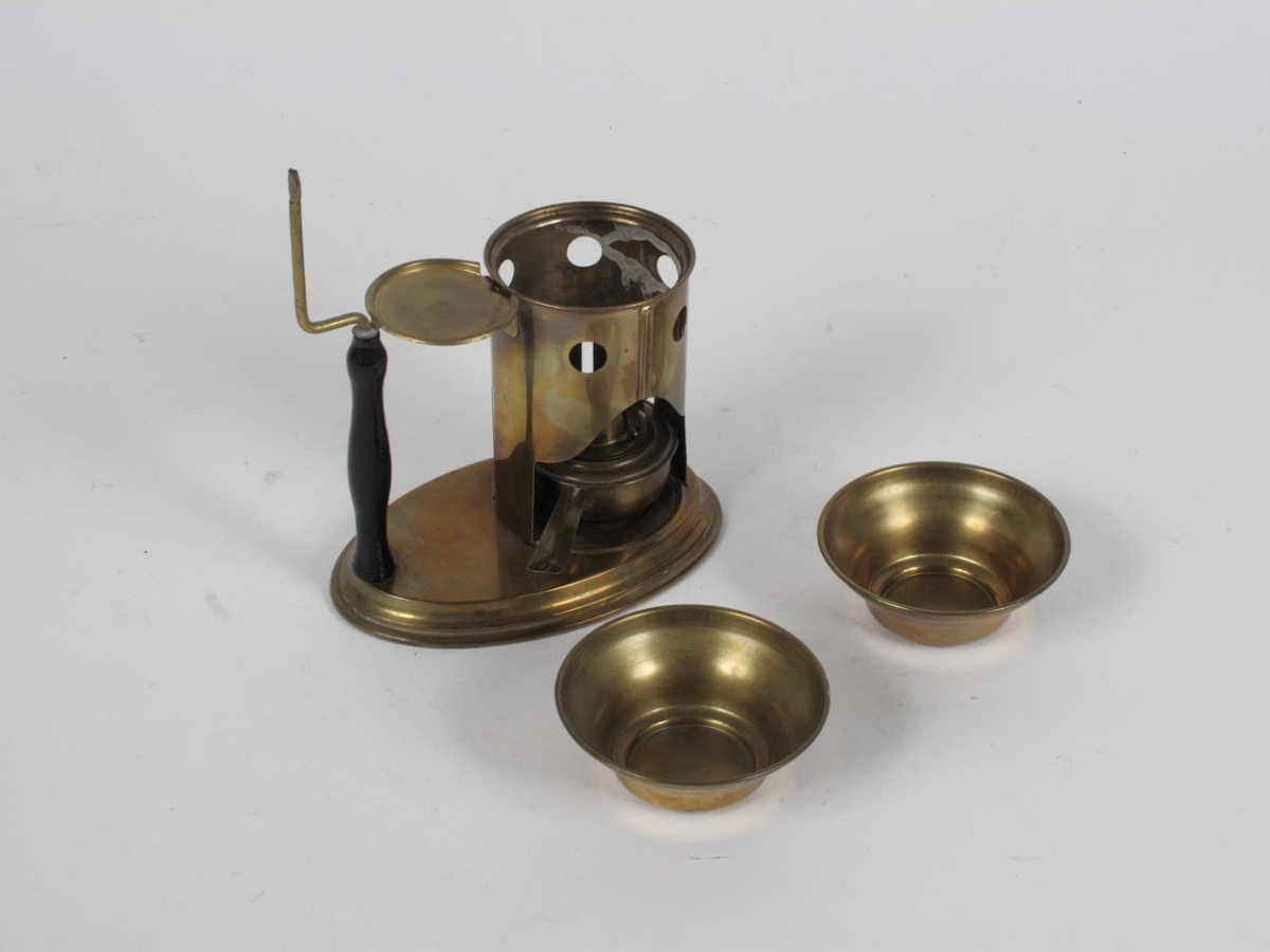 Gufubað úr látúni, það er á ávölum grunni, á öðrum enda hans rís sívöl hlíf, hæð: 10 cm, þvermál: 6.8 cm, utan um sprittlampa með höldu (einnig úr látúni), hlífin er merkt: (G með gufustrók frá öndunarvegi). Þar til koma tvær skálar sem falla hver í aðra og í hlífina, er efri þvermál þeirra er 8.5 cm. Upp frá hinum enda ávala grunnsins rís um 10 cm hátt svart lakkeruð viðarhalda, en í framhaldi hennar gengur látúnsteinn (lengd um 6 cm), útflattur í endann. Með tækinu liggur bréf frá Skúla Björnssyni. Lík gerð þessa tækis er Fig. 930 (en mindre Damp spray). Nyrop Bandager og Tristrum. 3 Bd. Kbh. 1877.