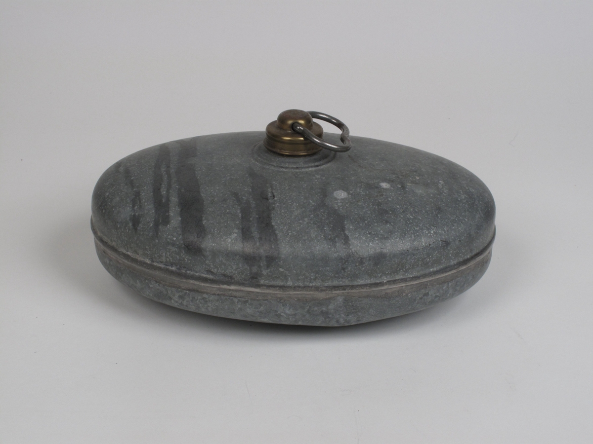 Sporöskjulaga hitadunkur. Er úr ómáluðu blikk með stút ofan á miðjunni og áskrúfuðu messingloki. Er kúftur að allri lögun. Þessi hitadunkur var í eigu frú Önnu Jóndóttur, ekkju Einars Jónssonar myndhöggvara. Frú Anna gaf Sigrúnu H. Ragnarsdóttur dunkinn árið 1968 of er trúlegt að dunkurinn hafi komið frá Danmörku en þeir voru algengir á heimilum þar.
