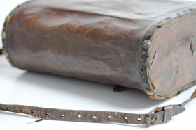 Hliðar hennar eru viðarplötur og utan um þær er leðrið fest með málmnöglum.