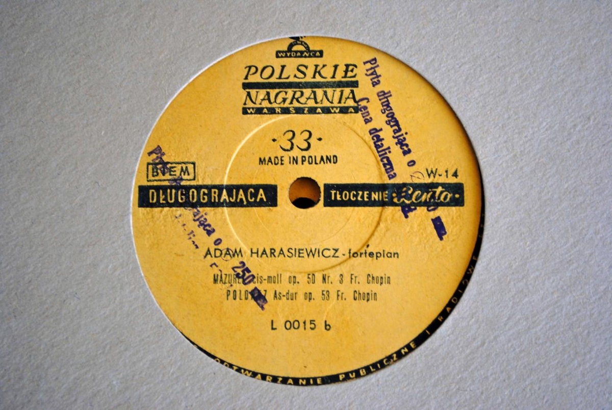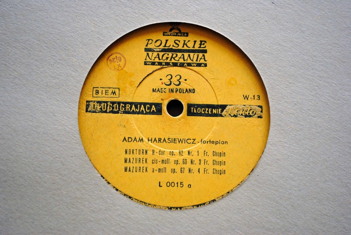 Vínrauð mappa sem geymir þrjár pólskar hljómplötur. Adam Harasiewicz píanóleikari leikur verk eftir Chopin á þeirri fyrstu. Önnur platan inniheldur upptöku af pólsku þjóðlagasveitinni Slask og sú þriðja upptöku af pólsku þjóðlakasveitinni Masowsze.