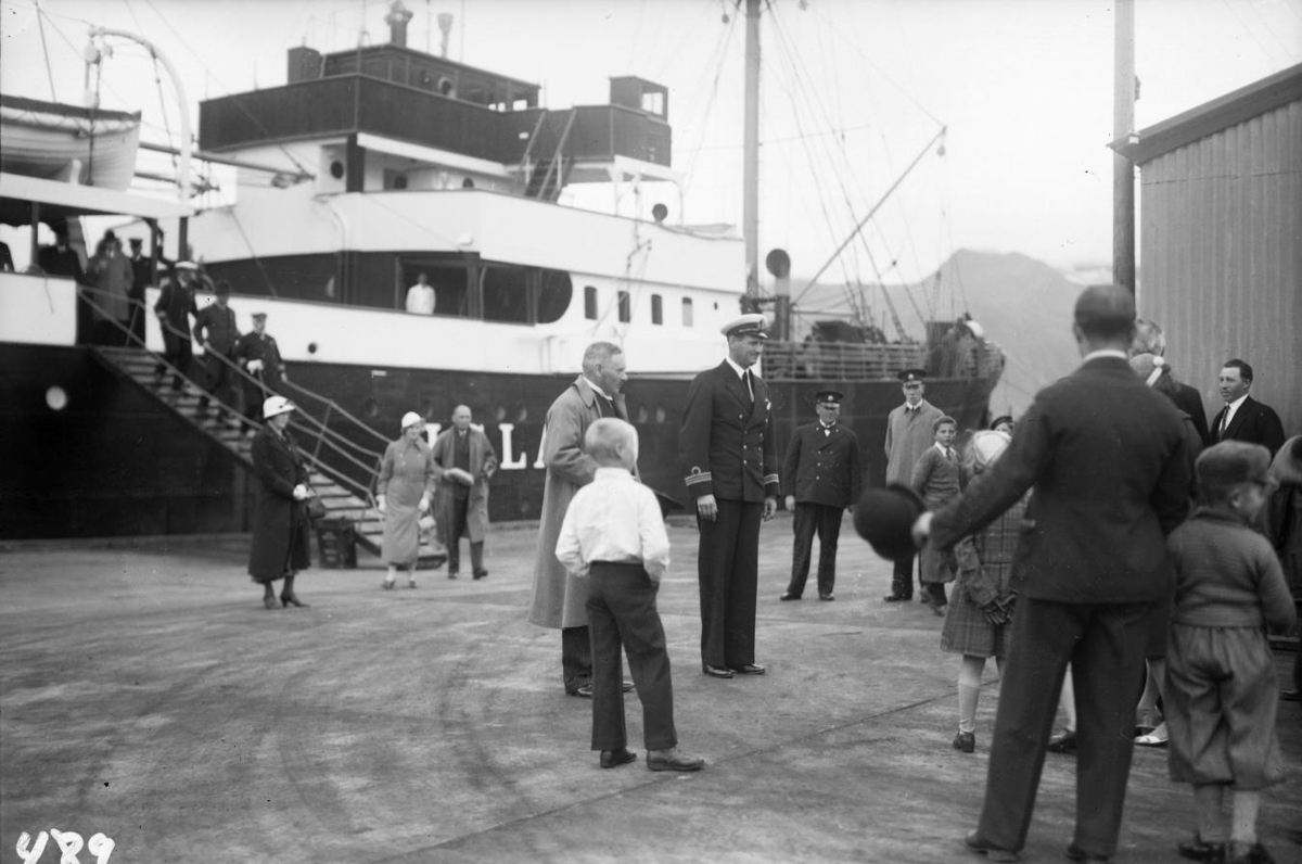 Knútur prins á hafnarbakkanum á Siglufirði. Í Fálkanum 9.árg.1936 kemur fram að konungshjónin hafi heimsótt Ísland árið 1926 "og var sú heimsókn með öðru móti en hin fyrri, undirbúningur allur sem minstur og förin hafði fremur á sjer snið persónulegrar skemtiferðar en opinberrar konungsheimsóknar.“