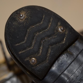 Þau eru negld í hælinn með þremur dekkjanöglum af Rögnvaldi Ólafssyni (1931) bifvélavirkja í Holti, Búðardal.