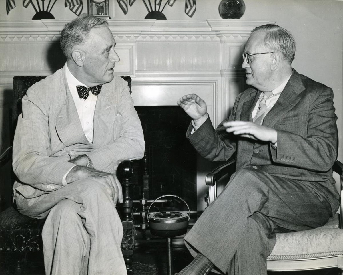 Franklin D. Roosevelt Bandaríkjaforseti og Sveinn Björnsson forseti Íslands á fundi.