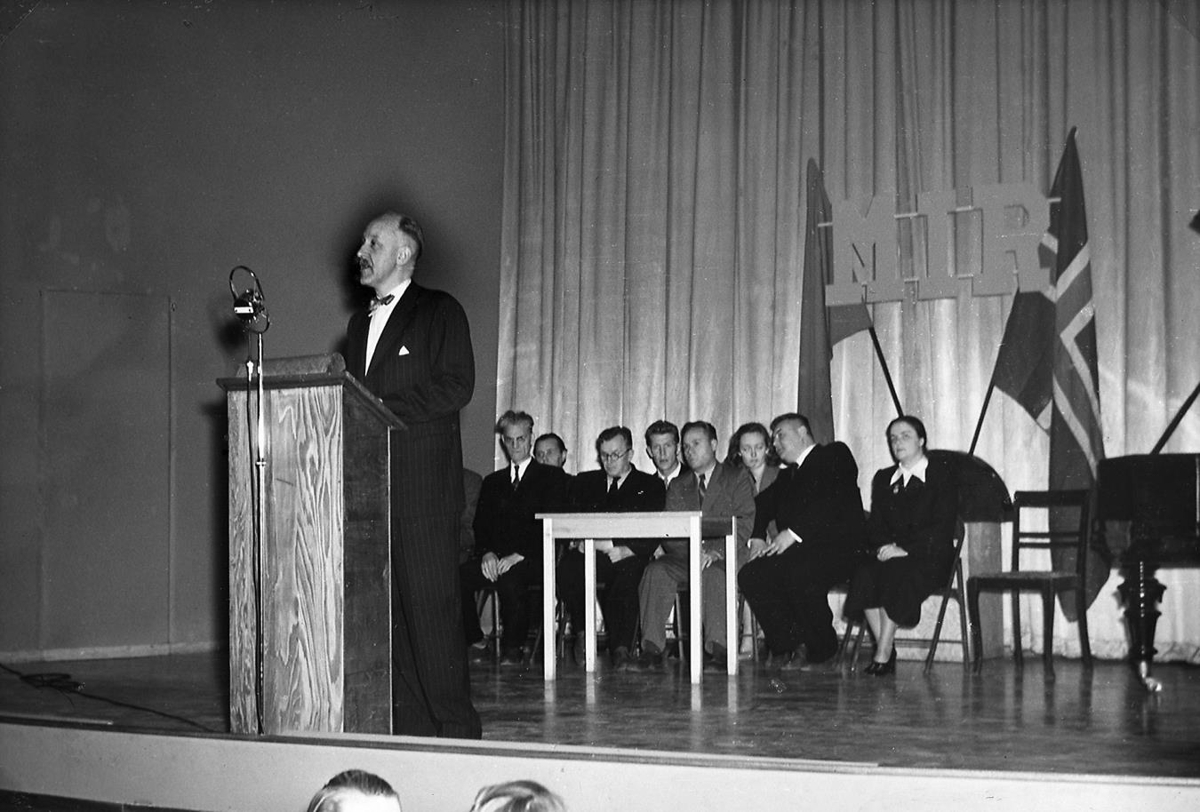 Mynd frá 2. ársþingi MÍR í september 1952 þegar önnur sendinefndin frá Sovétríkjunum var hér á landi.