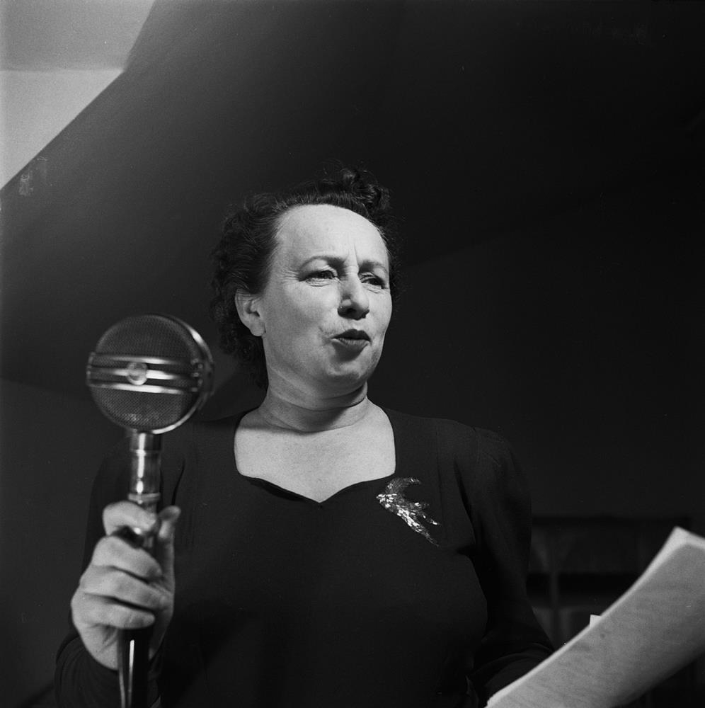 Rannveig Þorsteinsdóttir alþingismaður við hátalara. 1949.