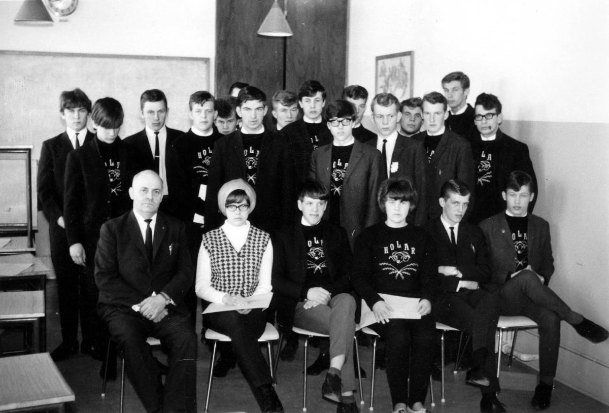 Búfræðingar á Hólum 1967, ásamt skólastjóra Hauki Jörundssyni. Halldór Guðlaugsson 2. röð 2 frá hægri.