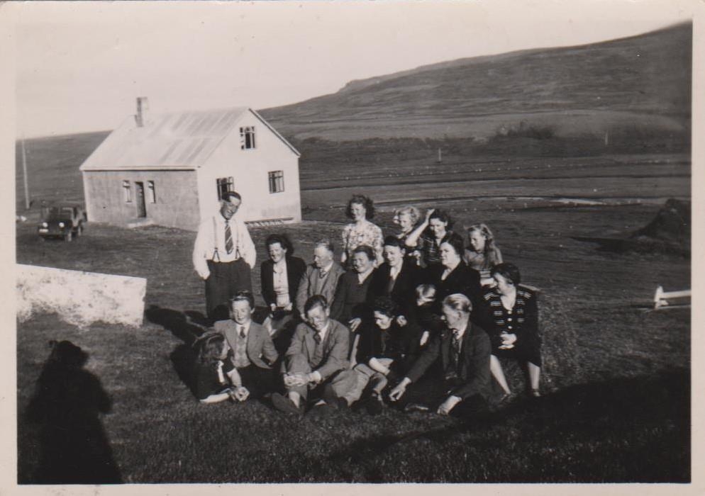 Hópmynd með Miðdalsgröf í bakgrunn.