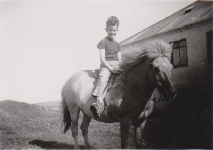 Drengur á hestbaki. Jón Hallur Jóhannsson sem var í sveit á Kirkjubóli nokkur sumur.