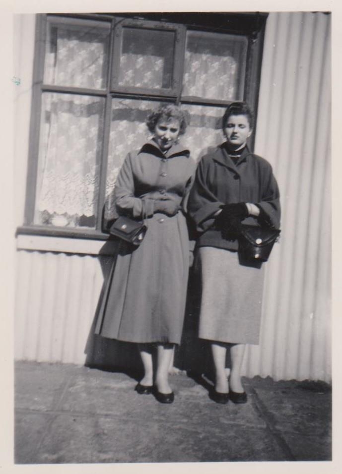 Uppstilling við húsvegg. Mynd tekin í Reykjavík.