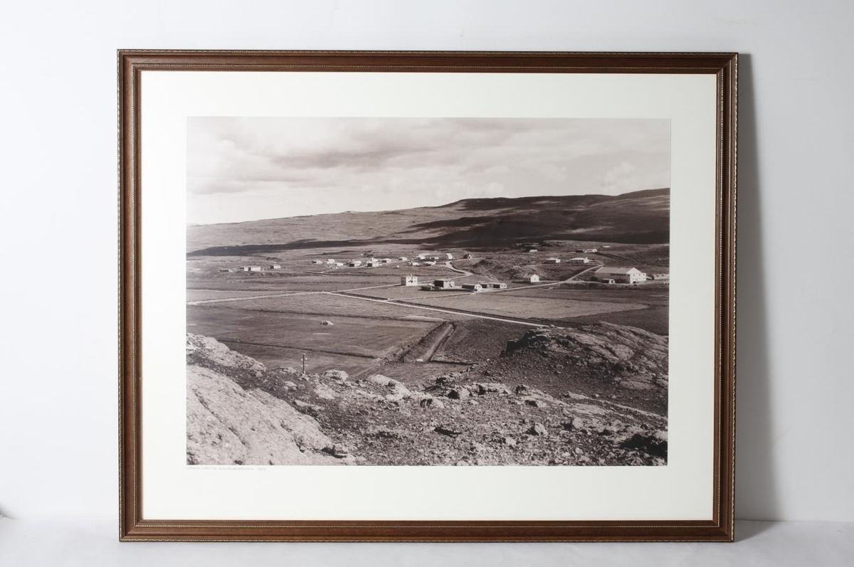 Ljósmynd af Egilsstaðaþorpinu sem tekin var 1954 ofan af Egilsstaðakollinum og upp í þorp. Myndina tók Vigfús Sigurgeirsson 1954.