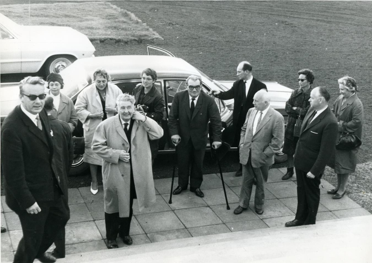 Fremst f. vinstri: Gylfi Þ. Gíslason, Sigurður Nordal; og t.h. Birgir Thorlacius. Líklega við Bessastaði á Álftanesi.