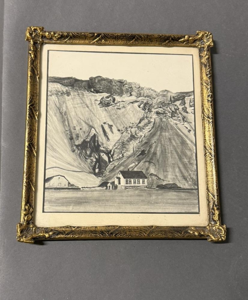 Innrömmuð ljósmynd/teikning. Gefendur eru ekkja og börn Jóns Aðalsteins Jónssonar (1920-2006)