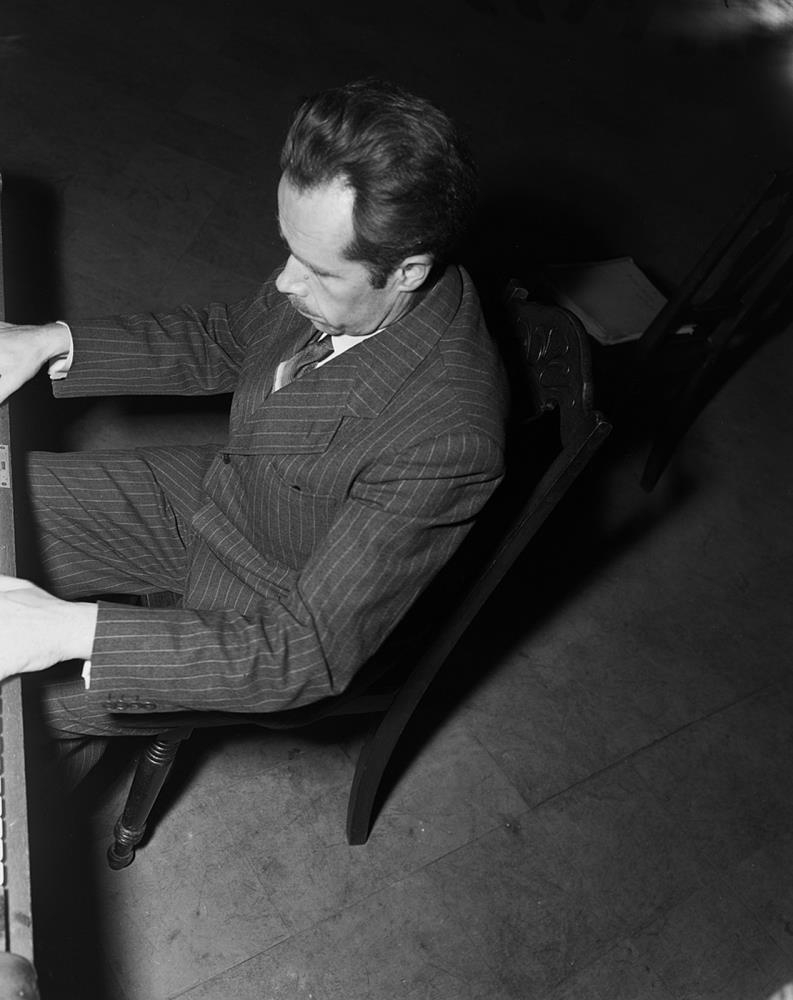 Valhöll. Þingvöllum. Aðalfundur SÍS 1947. Maður spilar á píanó. Victor Urbanshitsh.