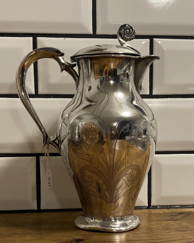 Silfurkanna sem gefendur fengu fyrir 50 árum og var þá gömul. Á lok og belg eru grafin blóm og blaðksraut. Notuð undir kakó á tyllidögum
