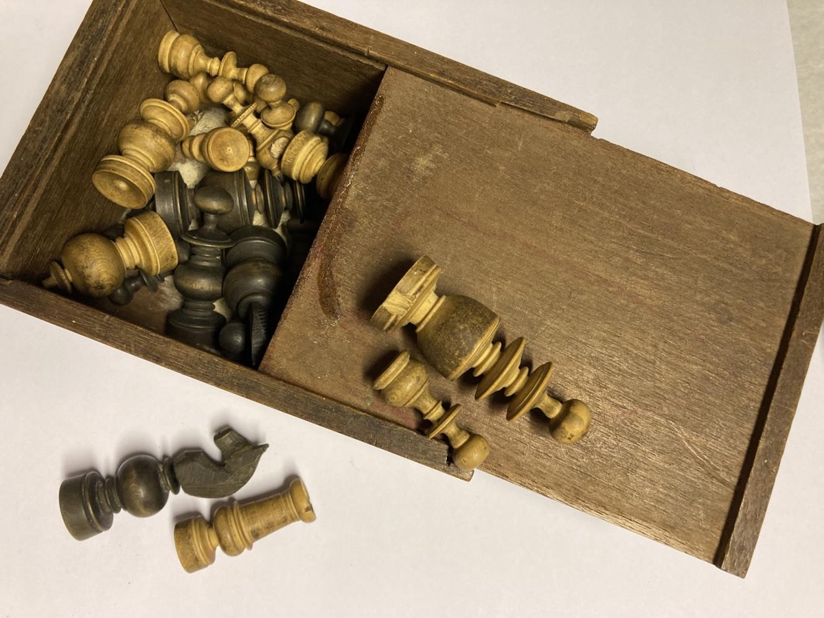 Manntafl með öllum taflmönnum í kassa. Kassi með renniloki og er 17,3 x 13,5 x 7,8 cm. Gjöf frá sonum Björns M. Loftssonar, smiðs og kennara frá Bakka í A-Landeyjum.