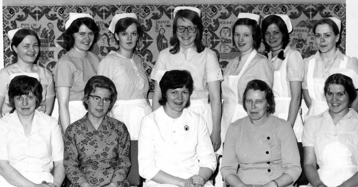 Á myndinni má m.a. sjá Margréti Kristinsdóttur skólastjóri Hússtjórnarskólans á Akureyri og Ólöfu Þórhallsdóttir sem kenndi vefnað við Hússtjórnarskólann. Aftast - brosandi - er líklega Jóhanna Gunnarsdóttir úr Fróðasundinu
