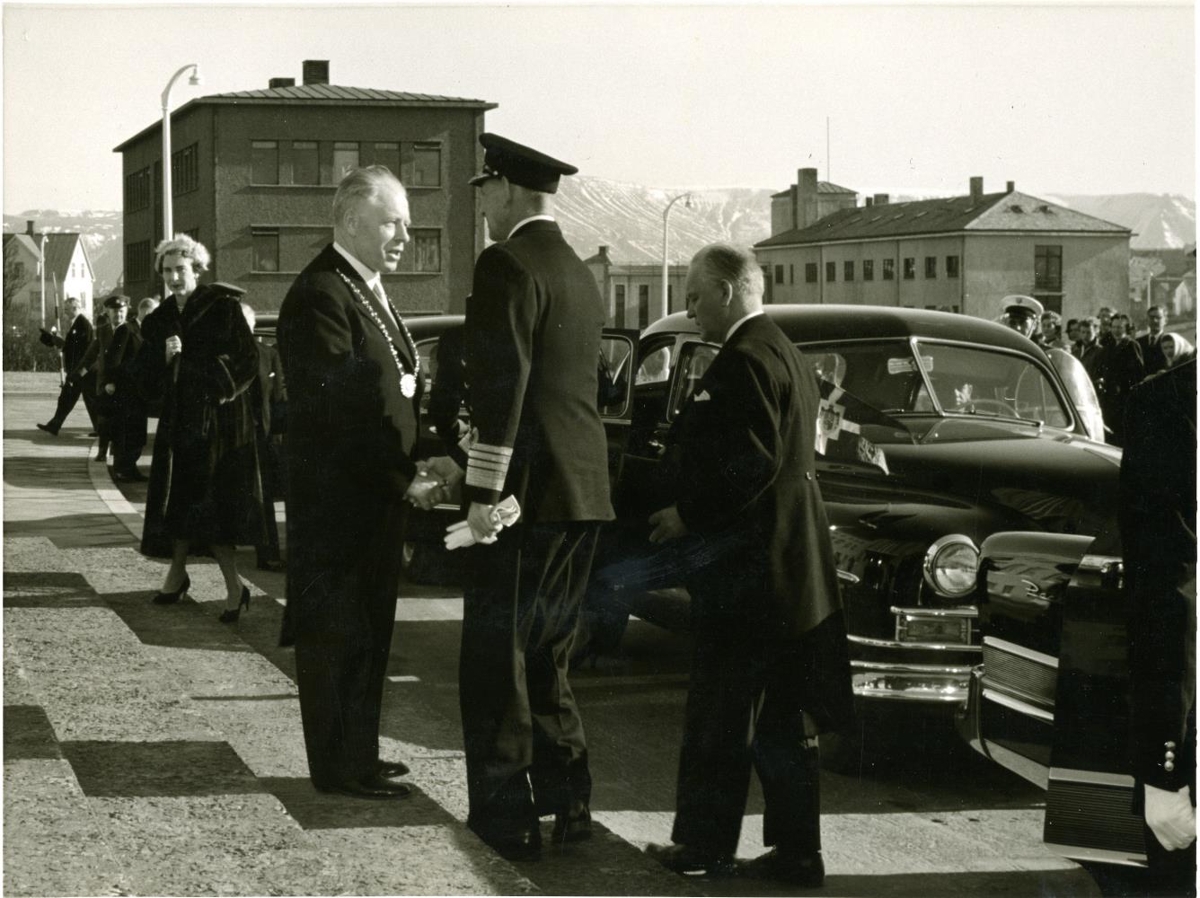 Merking: „Heimsókn dönsku konungshjónanna til Íslands 1956.“ Á bakhlið stimpill: Photo: Pétur Thomsen.